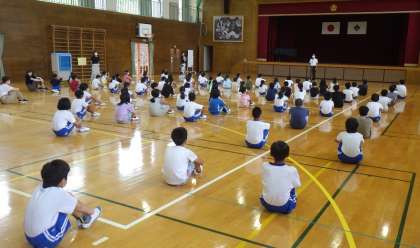 9月1日(水)全校集会が行われました。感染症対策に配慮し、「校長先生のお話」と「転入生紹介」のみ行いました。