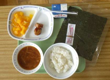 9月1日は、「防災の日献立」でした。おにぎりにして食べました。