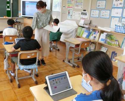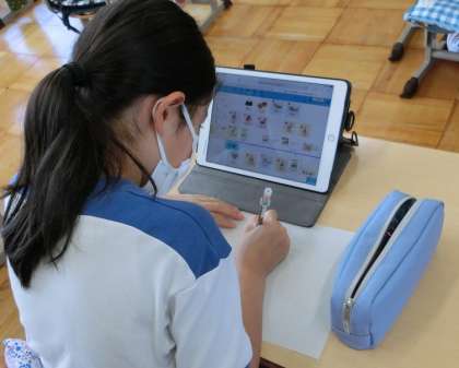 9月7日(火)、5年生で食育の学習を行いました。タブレットの学習アプリで、朝食・昼食・夕食のお買い物をし、カロリーや栄養バランスはだいじょうぶか確認していました。