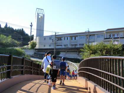 今日は、朝から気持ちの良い快晴でした。花山っ子は、「元気坂」を今日も元気に上ります。