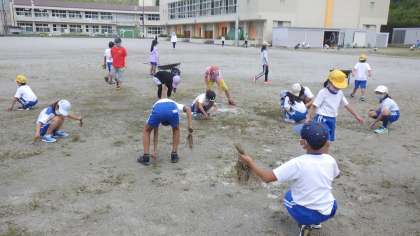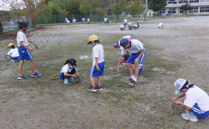 先週に引き続き、そうじの時間に「むくろじ班で草取り」行いました。