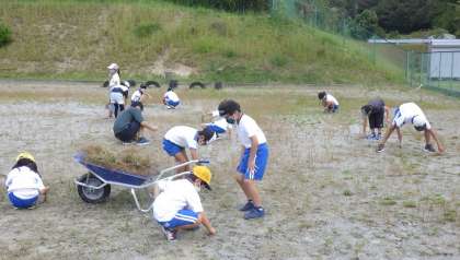 短時間に集中して、一輪車6台分草取りをがんばりました。
