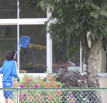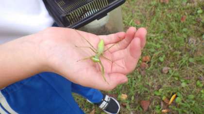 カマキリにバッタ、テントウムシ・・・。たくさんの児童が「虫とり」に夢中です。