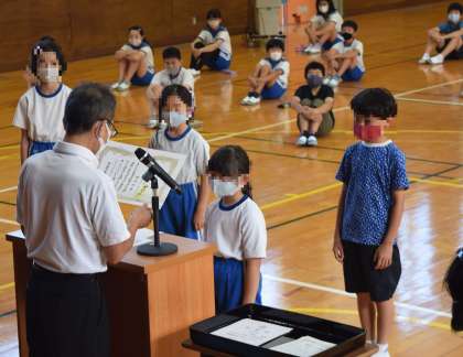 文詩集「ひまわり」入選、読書感想文コンクール入選、花山っ子賞等、各種表彰が行われました。