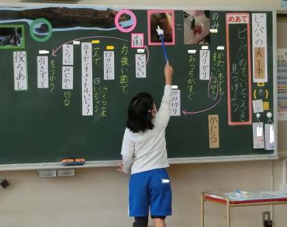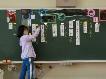 2年生が国語「ビーバーの大工事」で、研究授業を行いました。ビーバーのすごさを表す言葉に着目し、体験を含めた前時までの学習を生かして話し合い、学びを深めていました。