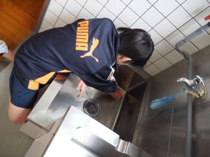 ごみ箱の中や、手洗い場をぴかぴかにしています。