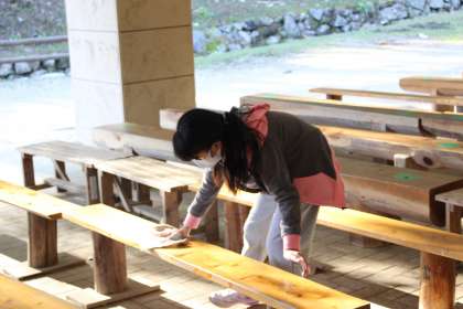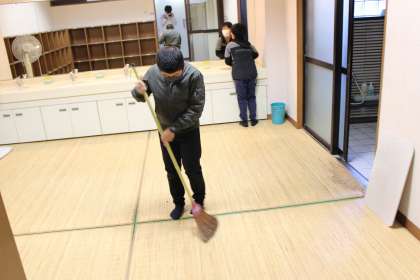二日間使用した部屋や食堂、屋外キャンプ場等を、「来た時より 美しく!」を合言葉にみんなで手分けして掃除をしました。
