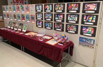 10月31日(日)に行われた「しもやまスマイルフェスタ」に、3年生・4年生・ささゆり学級の作品を出品しました。来場者の方々から、「素敵な作品ですね」と好評を博しました!