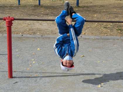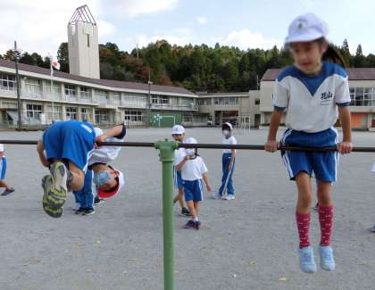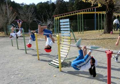 1・2年生合同体育で、鉄棒の発表会を行っていました。