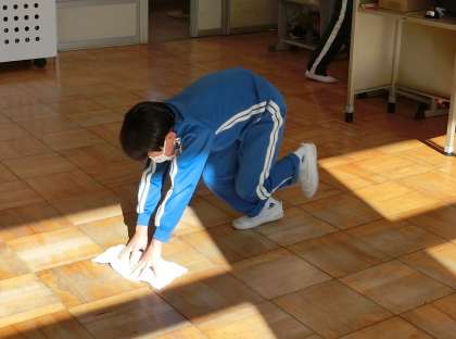 保護者の皆様から寄付をいただいたり、ボランティアさんや公務手さんが作製してくださったりしたおかげで、きれいな雑巾でお掃除することができています。