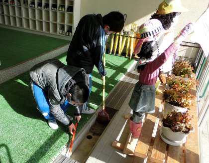 花山っ子のみんなは、むくろじ班の仲間と協力して、お掃除も頑張っています。
