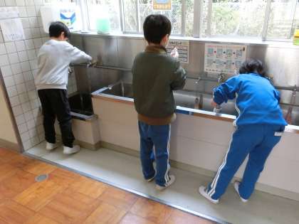 みんなが使った手洗い場を進んできれいにしたり、友達がこぼした墨液を拭いたりする姿が見られました。3年生の助け合い、素敵ですね。