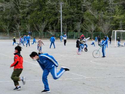 2月16日(水)、冷たい北風の吹く寒い日でしたが、運動場を駆け巡る元気な花山っ子の姿がたくさん見られました。