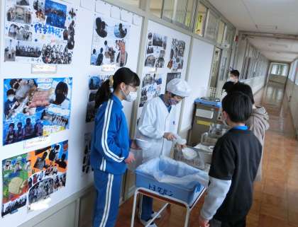 3月1日は、ワックスがけのためランチルームで給食が食べれず、5年生と6年生は久しぶりに教室で給食を食べました。