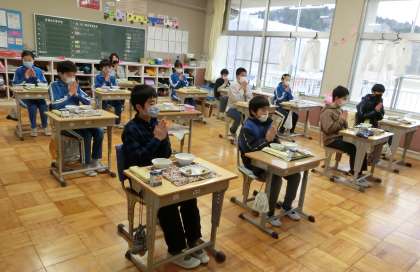 久しぶりの教室での給食 6年生