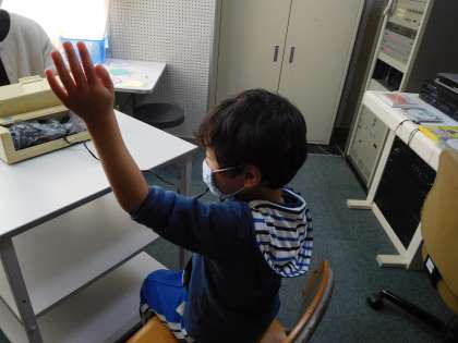 音が聞こえると「はい!」と元気よく手を上げました。