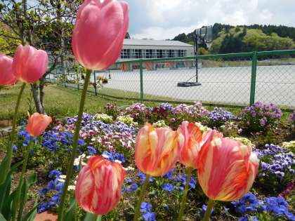 公務手さんが植えてくれたチューリップがきれいです。