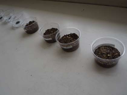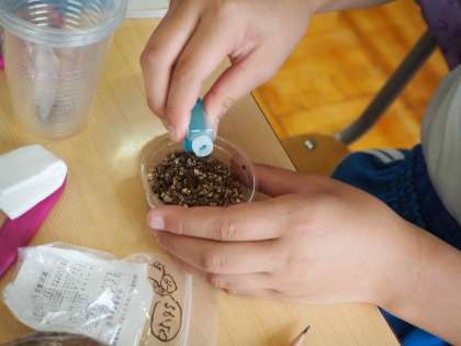 種子の発芽を勉強するために、栄養あり・なしのような、条件を変えた種まきをしました。どんな結果になるのか楽しみですね!