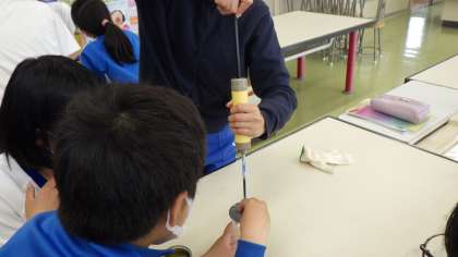 理科の「ものの燃え方」の学習で、初めて気体検知管を使いました。びんの中の酸素と二酸化炭素の割合を調べることができました。