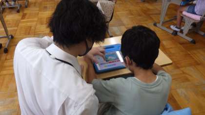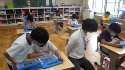 6月21日(火)に、今年度初めてICT支援員の方と一緒に全校でそれぞれ「スクラッチ」などプログラミングの学習をしました。
