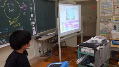 3年生は、「スクラッチJr」というプログラミングのアプリを使って、「海の中で生き物を動かそう」というテーマで作品を作りました。