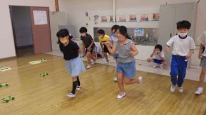 3年生が理科の学習で、風やゴムで車を動かしています。