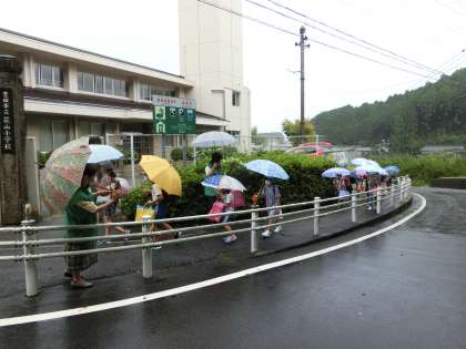 9月1日、小雨の降る中、民生児童委員さんによるあいさつ活動が行われました。