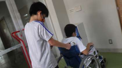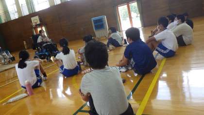 車いすに乗ると、普段何気なく使っている体育館にも危険箇所や走行が難しいところが見つかり、バリアフリーについて考えるきっかけとなりました。