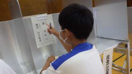 9月28日(水)に、6年生が選挙出前トークを行いました。本物の機材を使った疑似選挙に児童はどきどきです。プラスチックでできた選挙用紙や受付の機械、投票数を数える機械など、選挙の工夫をたくさん知ることができました。