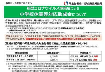 「新型コロナウイルス感染症による小学校休業等対応助成金・支援金」について