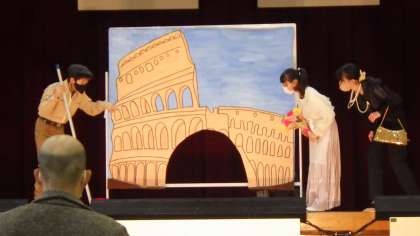 11月1日(火)に、劇団員の方に劇の通し練習を見ていただき、よりよくするためのアドバイスをたくさんいただきました。場面転換の効果的な演出のコツや、舞台の立ち方を教えていただき、来週の下見会に向けてさらにパワーアップできそうです。