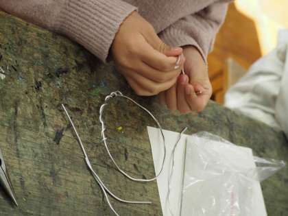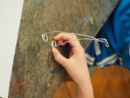 針金とラジオペンチを使って、作品作りに取り組んでいます。立体的な作品を目指し、作品が立ち上がるよう工夫しています。