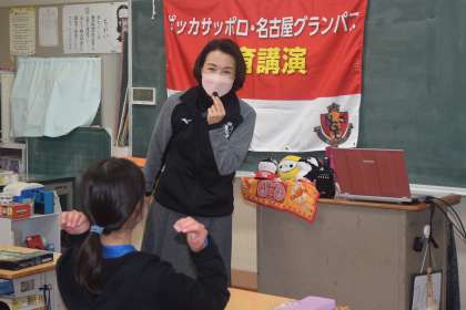 子どもたちは、グランパスの選手のメッセージ動画に、目を輝かせていました。