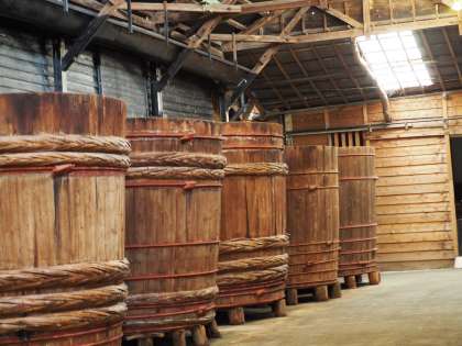 給食でも使われている枡塚味噌のいいにおいに囲まれた蔵や、大きな味噌樽を見ました。味噌の歴史や作り方について学ぶよい機会でした。