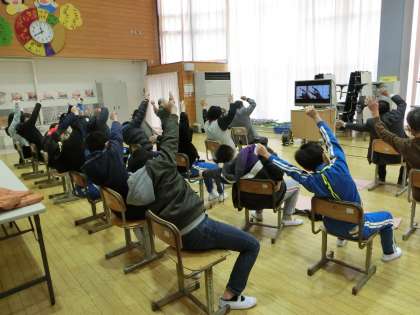 13日(月)の3時間目に、6年生が高齢者の方と交流会を行いました。総合的な学習の時間で学んだことを生かして、高齢者の方も自分たちも全員が楽しめる内容を計画したり、怪我防止につながるストレッチ動画づくりを行ったりしてきました。