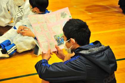 むくろじ班の6年生へメッセージの寄せ書きをプレゼントしました。「ずっと見てられる!」と6年生が言ってくれました。とてもうれしかったね!