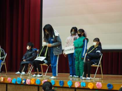 5年生は、いっしょに演じた「モモと時間どろぼう」をモチーフに劇をしました。また、6年生が過ごした花山小学校で起きたおもしろエピソードをコントにしてお届けしました。6年生が笑ってくれてうれしかったね!