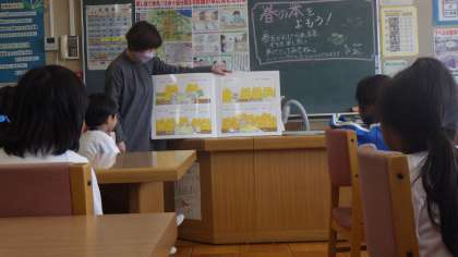 国語の学習で、図書館司書さんから本の使い方や借り方を学びました。また、わくわくする絵本の読み聞かせも行っていただきました。いろいろな本との出会いが楽しみですね♪
