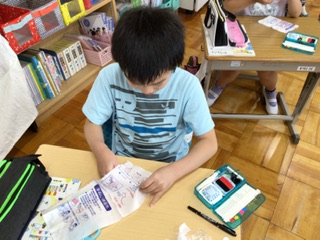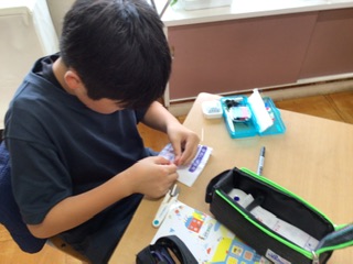 5年生の家庭科では、手縫いの学習をしています。玉止めや玉結びがだんだんできる子が増えてきました。今日は、自分の名前を縫いました。家で練習しようと裁縫セットを持ち帰った子もいます。