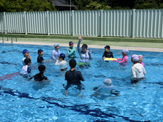 いよいよ、水泳の学習が始まりました。5年生は、2時間目にプールに入りました。水泳の学習の約束や安全の確保について、朝の会で真剣に話を聞くことができました。安全を第一に、楽しく学習していきます。プール開きでは、ミニゲームをしたりビート板を使った爆弾ゲームをしたりして、楽しく水中で活動しました。