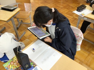 5年生の図工では、ものを少しずつ動かしたり形を変えたりして、記録した写真を連続し、アニメーションにする学習を行っています。今日は、教室の中にあるものを自由に使って、作品を作りました。たくさんのアニメーションを作る子もいれば、じっくりと一つの作品を作る子もいます。