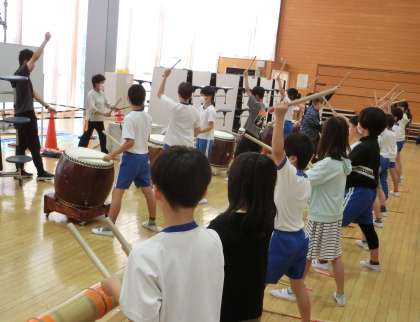 和太鼓クラブは、講師の先生方から「ばちの持ち方」や「構え方」等、基礎基本を中心に教わっていました。