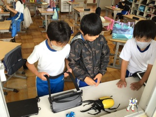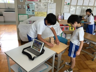 先週から、5年生の図工では、ものを少しずつ動かしたり形を変えたりして、記録した写真を連続し、アニメーションにする学習を行っています。今日は、2回目の学習でした。学校にあるものを使ったり、家から用具を持ってきたりしました。仲間の作品を見合いながら、想像力豊かに楽しく活動しています。