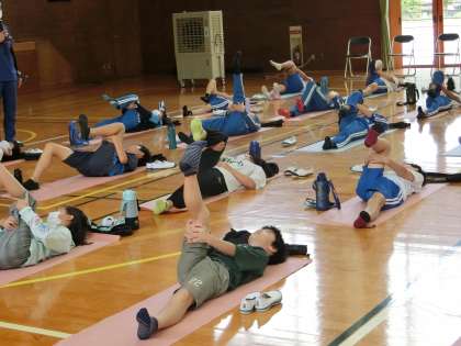 吉田整形外科のリハビリテーション科 中宿先生を講師にお招きし、運動と柔軟の大切さや、運動しやすい体をつくるための、股関節の可動域を広げるストレッチを教えていただきました。