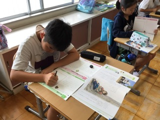 道徳で、原爆を題材にしたお話をもとに学習しました。一人一人が真剣に考え、当時の人々に想いを馳せました。中には「私だったら・・・」と自分ごとに置き換えて考える子もたくさんいました。夏休みを目前に控え、約80年前の日本で起きたことについてじっくりと考えました。