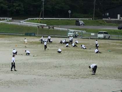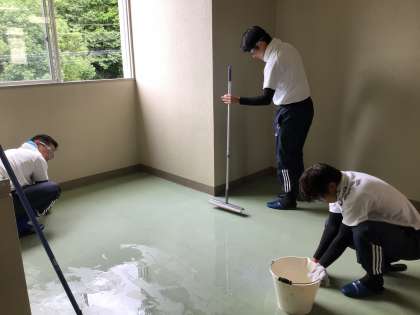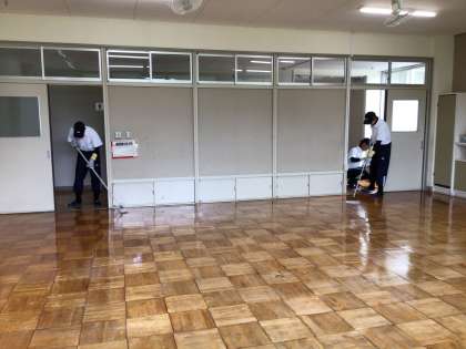 運動場の草取り、体育倉庫の掃除・整理、大型廃棄物の移動、校内のワックスがけ等を行っていただきました。