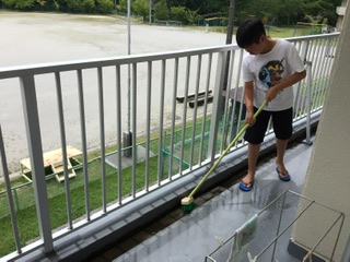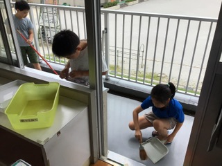 いよいよ、明日から夏休みです。気持ちよく夏休みを迎えるために、5年生全員で掃除をしました。教室やベランダ、手洗い場など、みんなが使う場所がきれいになりました。