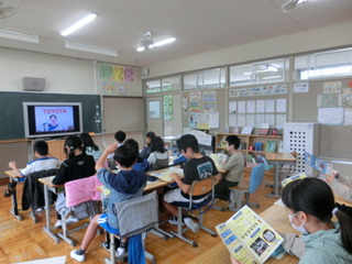 オンライン授業で、トヨタ自動車のクルマ作りについて学習しました。安全なクルマを作るための工夫や環境保全活動など、トヨタ自動車のものづくりについて教えてもらいました。最後の質問タイムでは、時間が足りないほどたくさんの質問があがりました。実際の映像を見たり現場の話を聞いたりして、学びの多い1時間でした。