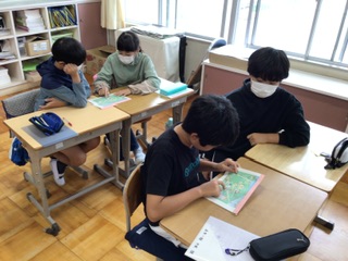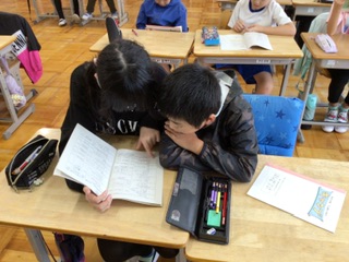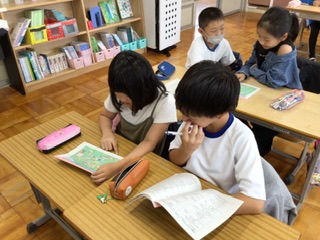 5年生にとって大切な行事の一つであるキャンプに向けて、着々と準備を進めています。グループごとにキャンプの行程を確かめたり、全員で出し物の準備をしたりしています。仲間と協力したり楽しく活動を進める様子から、2日間が素敵な思い出になるのではないかと感じられます。
