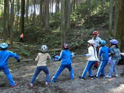 学区の山へ行き、森の健康診断を行いました。迫力満点の伐倒や、丸太のコースター作りなど充実した1日となりました。